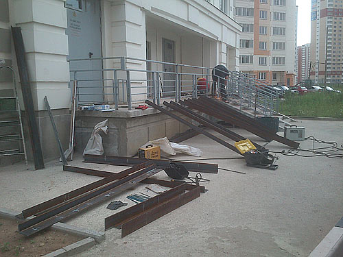 Подготовка металла для усиления проемов на первом этаже. Металл в размер подготавливается всегда на объекте.